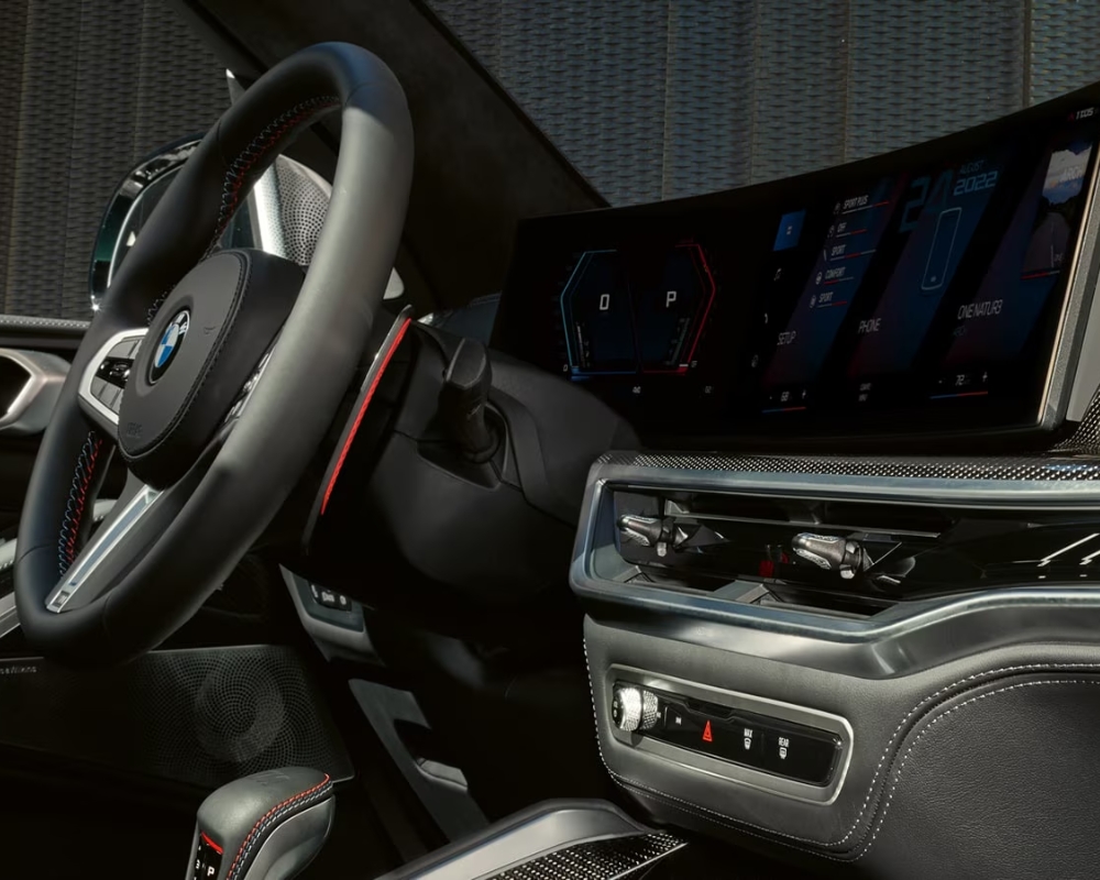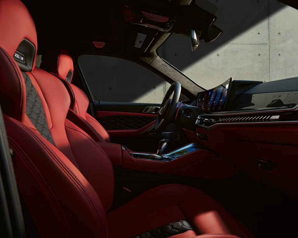 Dans sa version Compétition, l’automobile arbore des jantes de 21 ou 22 pouces, des coques de rétroviseurs M en carbone, un système d’échappement à deux doubles embouts en Schwarz Chrom et des seuils de porte éclairés avec logo X6 M Compétition.