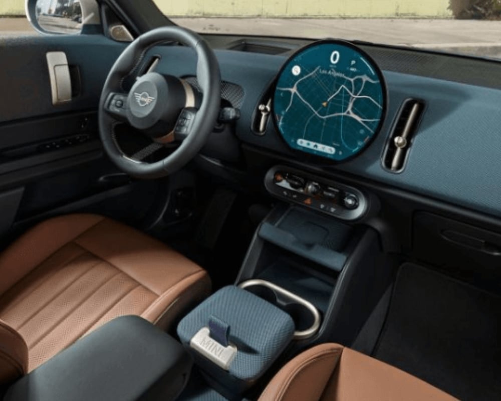 À l’intérieur, cette Mini a opté pour un design plus épuré et simpliste. Vous avez des sièges avant chauffants et un revêtement de qualité pour tous les véhicules de cette gamme. Il propose aussi un tableau de bord élégant avec un écran central rond avec des éclairages en LED.